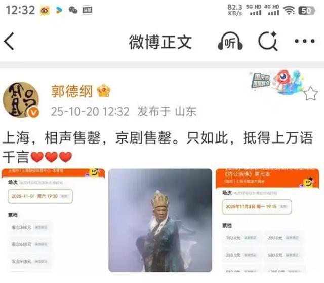 就拿最近的上海专场来说,他安排了相声跟京戏两场,都是很火爆的,票房售罄,还满席。