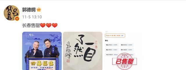 11月5日,他又在微博了报喜了,就是长春的票售罄,还配上了三个爱心的表情。